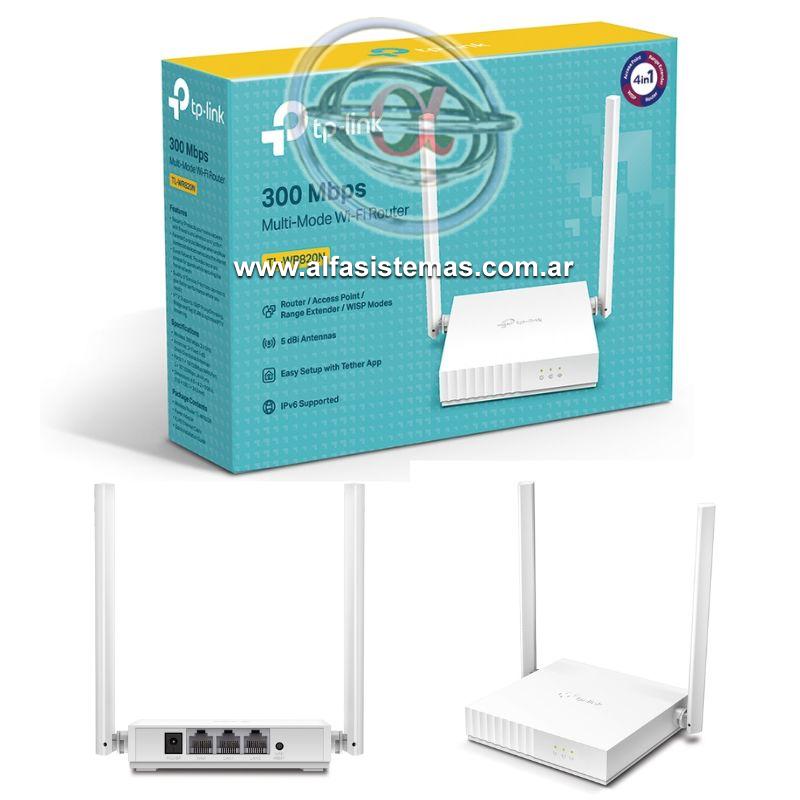 | ROUTER 2P TP-LINK WR820N 11N 300MBPS 2X5DBI (35844) Características: - Estándares: Wi-Fi 4 - IEEE 802.11n/b/g 2.4 GHz - Velocidad WiFi: N300 2.4 GHz: 300 Mbps (802.11n) - Modos de trabajo: * Modo Router * Modo Punto de Acceso * Modo Extensor de Rango Wi-fi * Modo WISP |