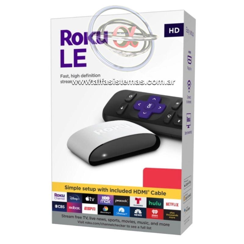 | ROKU STREAM TV LE HD Características: - Reproduce por streaming TV gratis, noticias en vivo, deportes, música, películas y más. - Fácil de usar y con una configuración sencilla. - Incluye cable HDMI® de alta velocidad. - Control remoto simple con botones de acceso directo a canales. |