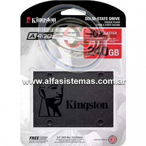 Características: Marca: Kingston Línea: A400 Capacidad: 240 GB Interfaces: SATA III Aplicaciones: Notebook Ubicación: Interno Factor de forma: 2.5 in