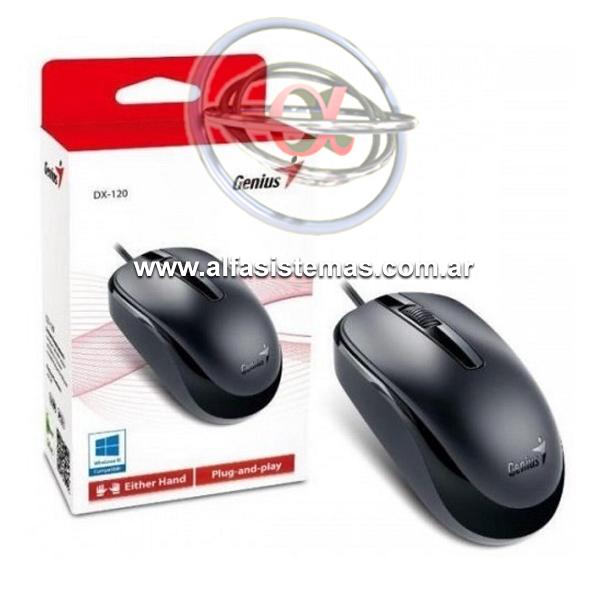 | Mouse Genius DX-120 USB Negro CARACTERÍSTICAS: * Requisitos del sistema: Windows 7, 8, 8.1, 10 * Puerto USB * Unidad de sensor: Óptico * Longitud de cable: 1.5m * Cantidad de botones: Tres (izquierda, derecha y central con desplazamiento) * Resolución (DPI): 1200 |
